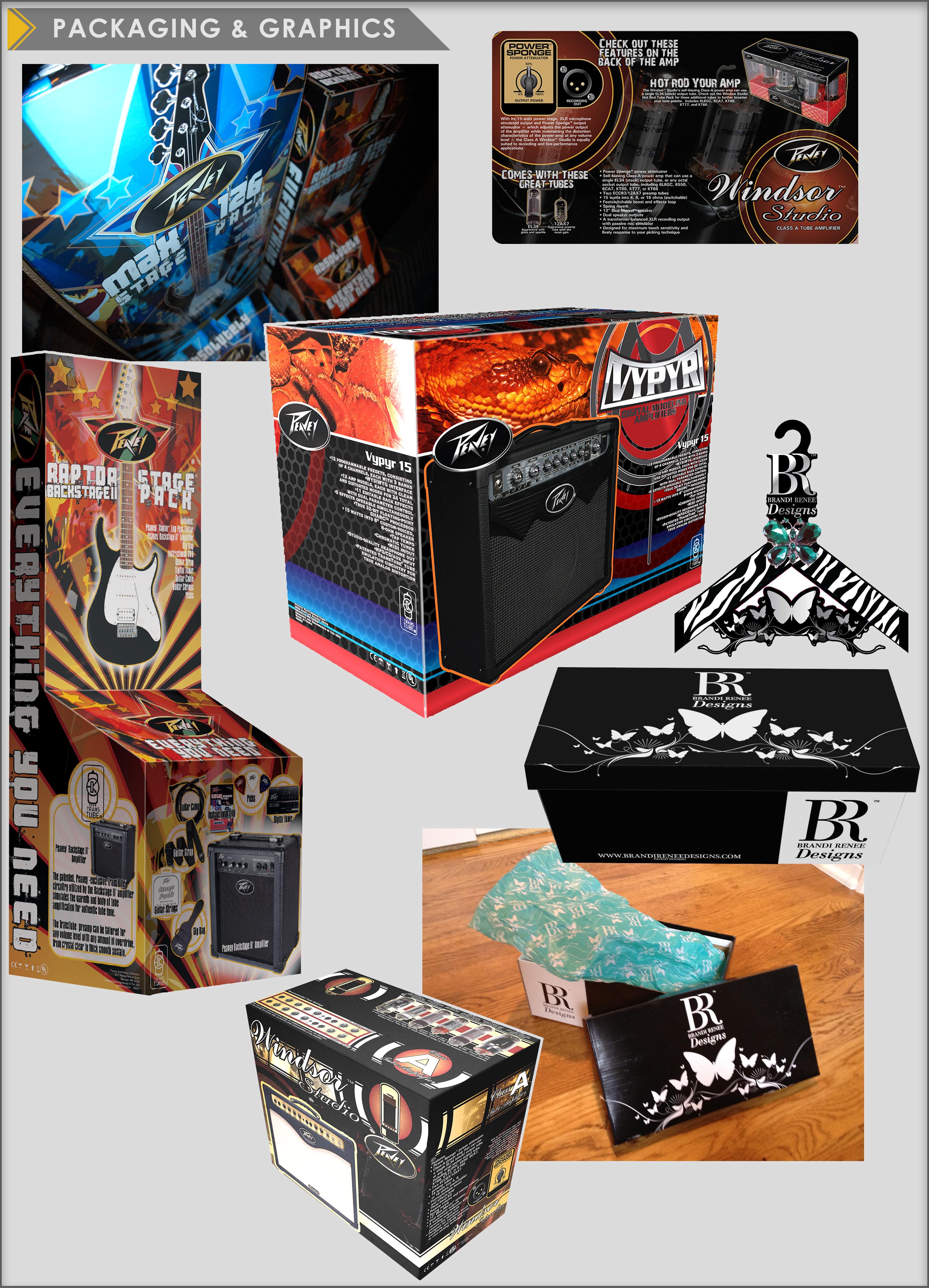 To the right are various packages & point of purchase displays I have designed over the years.