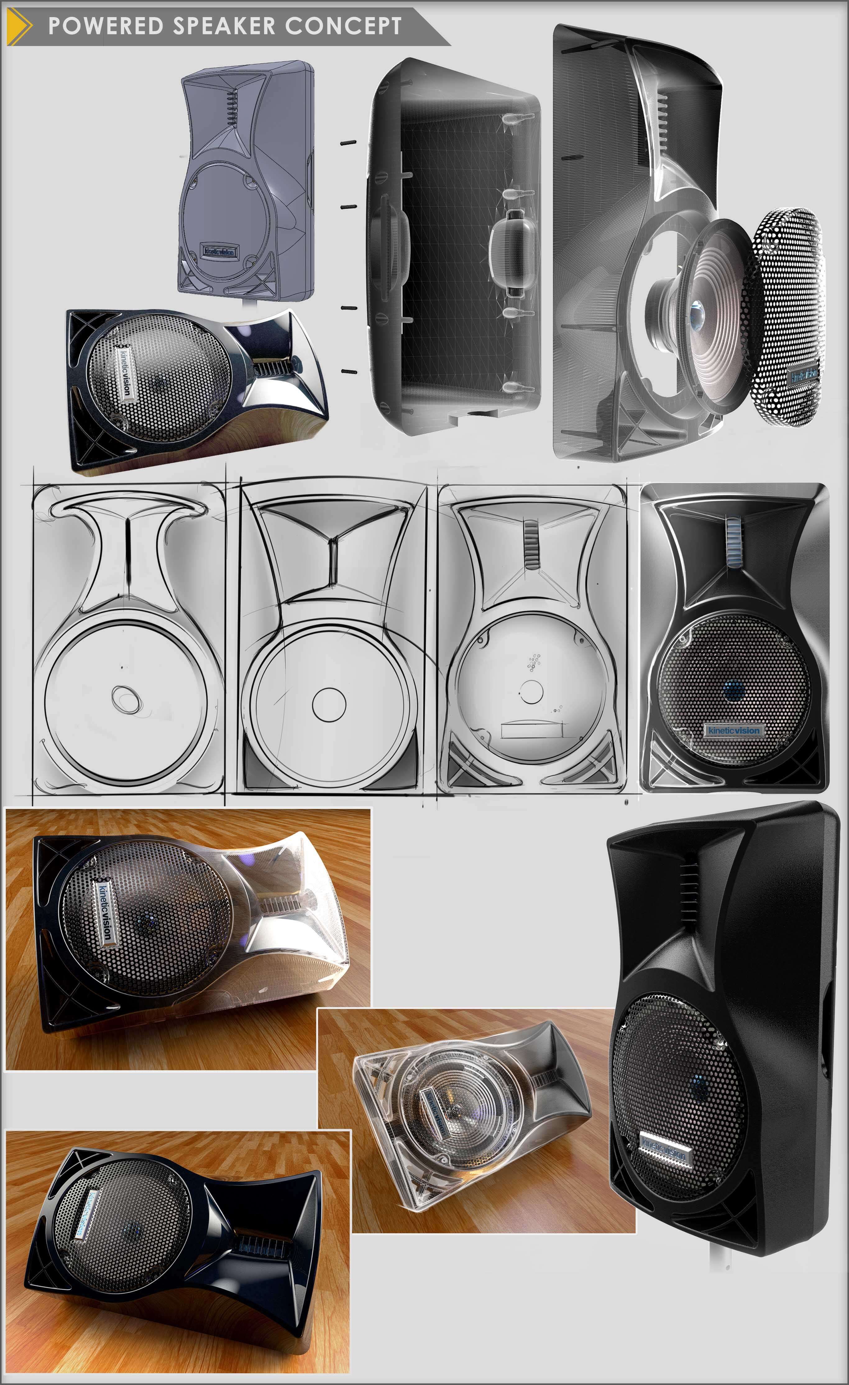 This powered speaker concept was based on a design I had years ago which never got executed. I liked it so much that I made some changes, built in in SolidWorks and rendered in Keyshot.