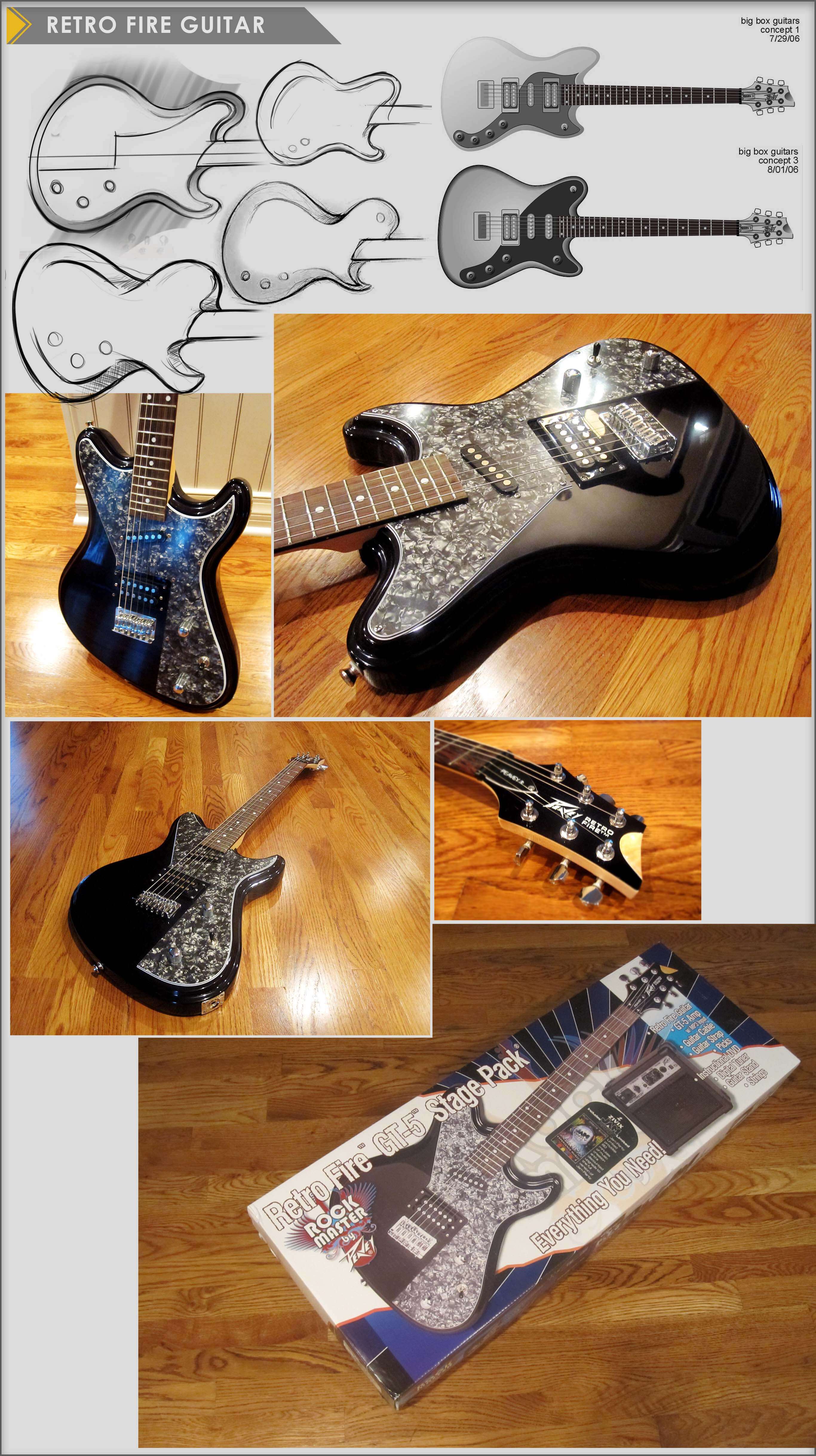 The Retro Fire was a guitar I designed while at Peavey for Big Box retailers such as Walmart and Target. I was inspired by the designs of 60s Sears brands like Silvertone as made popular by garage rock bands like the White Stripes.